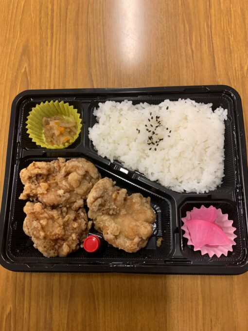 本日もお昼は、私の好評の唐揚げ弁当(タレも美味しい)。