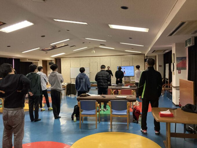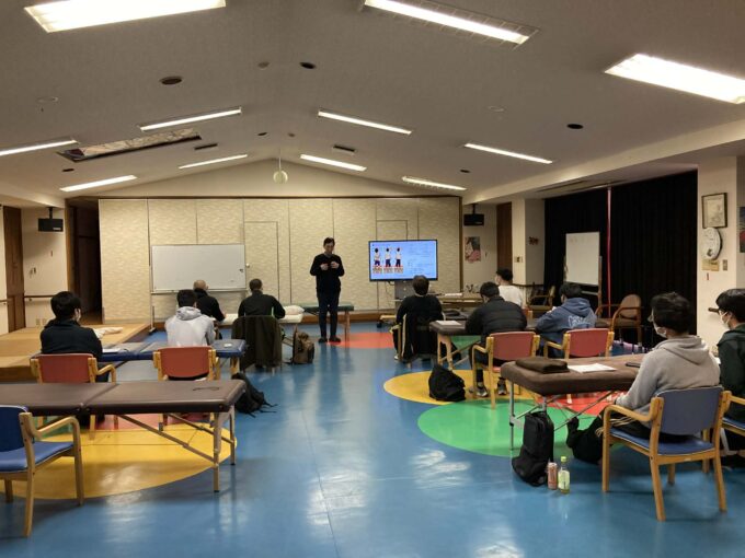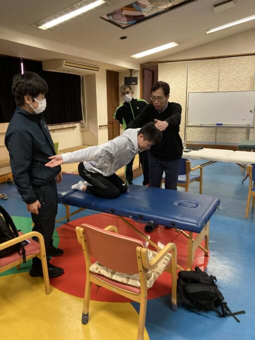 午後からは、体幹回旋運動のトレーニング方法を動画を交えながら実施しました。実施する際の留意点や誤った方法のポイントなどをしっかりと説明しました。
